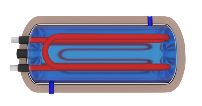 Zbiornik izolowany za pomocą pianki PUR, a także okryty tkaniną skay (kolor szary). Dostępna również tańsza wersja bez skaju.
