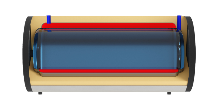- Poziomy wymiennik z płaszczem umożliwia podłączenie jednego źródła ciepła, doskonale sprawdza się przy współpracy z kotłem na paliwa stałe. Może być instalowany wszędzie tam, gdzie jest dostęp do ciepłej wody z sieci C.O.