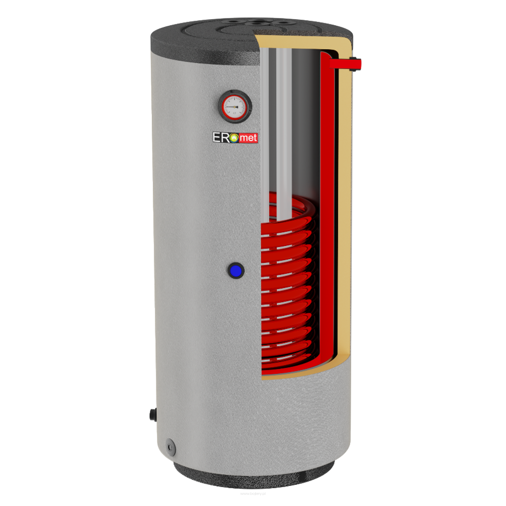 Wymiennik ciepłej wody użytkowej jest to urządzenie przeznaczone do podgrzewania wody oraz utrzymywania jej w stanie nagrzanym. Legendarny zbiornik dwupłaszczowy doposażony został w zwój nierdzewnej wężownicy karbowanej o mocy od 1,5 do 7m2, do której podpiąć można każdy rodzaj pompy ciepła, nie wykluczając możliwości podpięcia drugiego źródła ciepła na paliwa stałe. Wykorzystywana jest wężownica higieniczna posiadająca atest PZH do wody pitnej. Płaszcz oraz nierdzewna wężownica spiralna przeznaczone są do wody kotłowej, oddzielnego bądź tego samego zasilania.